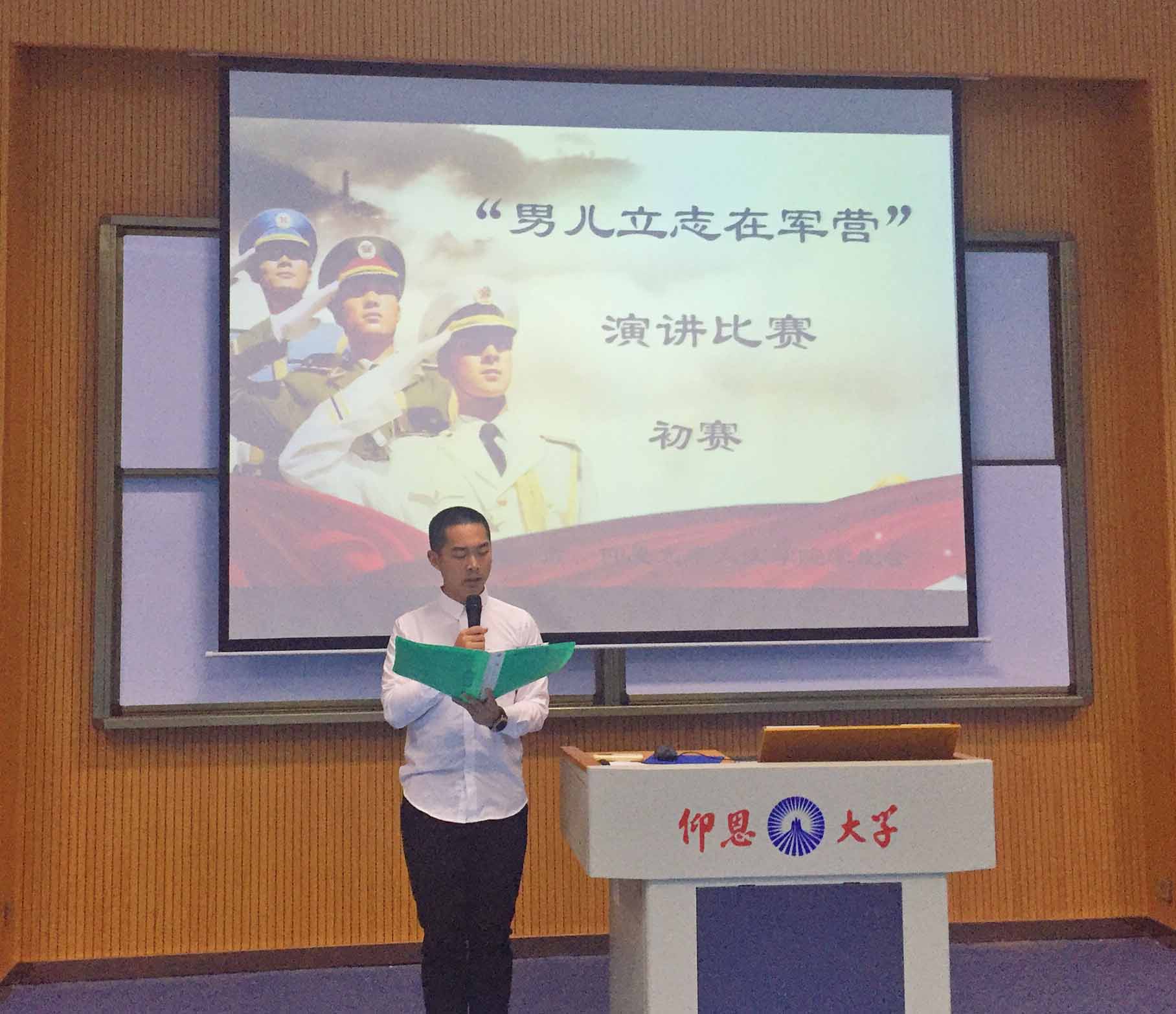 4月13日,为了新一轮征兵工作的顺利开展,yl7703永利集团在第三教学区和昌教学楼海纳讲堂内举行“男儿立志在军营”演讲比赛初赛。 一共有12位选手参加本次初赛。
