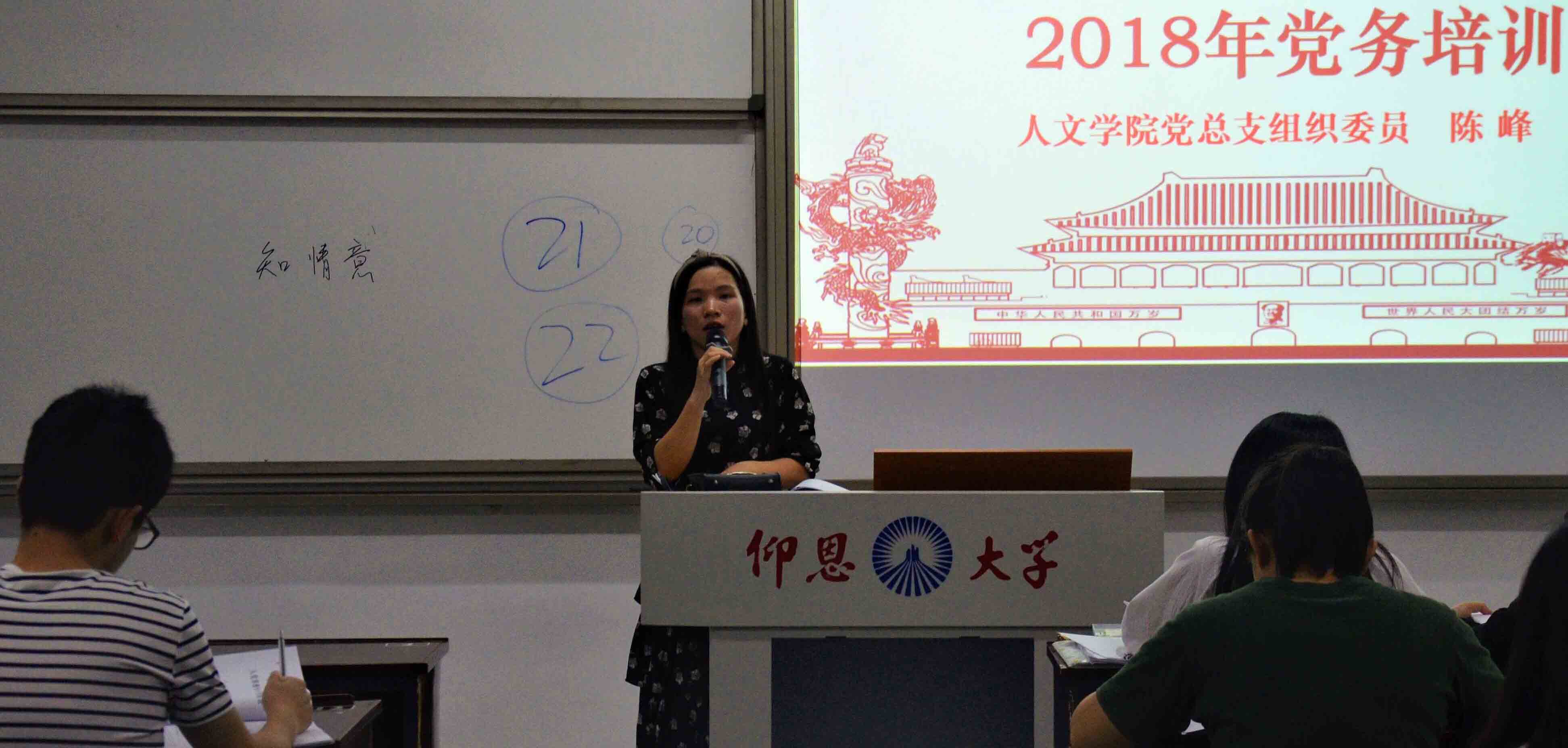 陈峰老师讲解党务工作注意事项 培训会伊始,陈峰老师对yl7703永利集团过去的党务工作进行了一次简短的总结,她向中文支部的党务工作开展情况表示肯定,并提出表扬,希望各支部向中文支部学习,要善于总结工作中的不足之处,不要拘泥于理论知识,要在实践工作中摸索出党务工作的新规律。之后,陈峰老师对yl7703永利集团发展党员工作的流程及材料整理规则进行详细的讲解,并结合实际情况阐释该如何处理理论与现实相冲突时的矛盾。