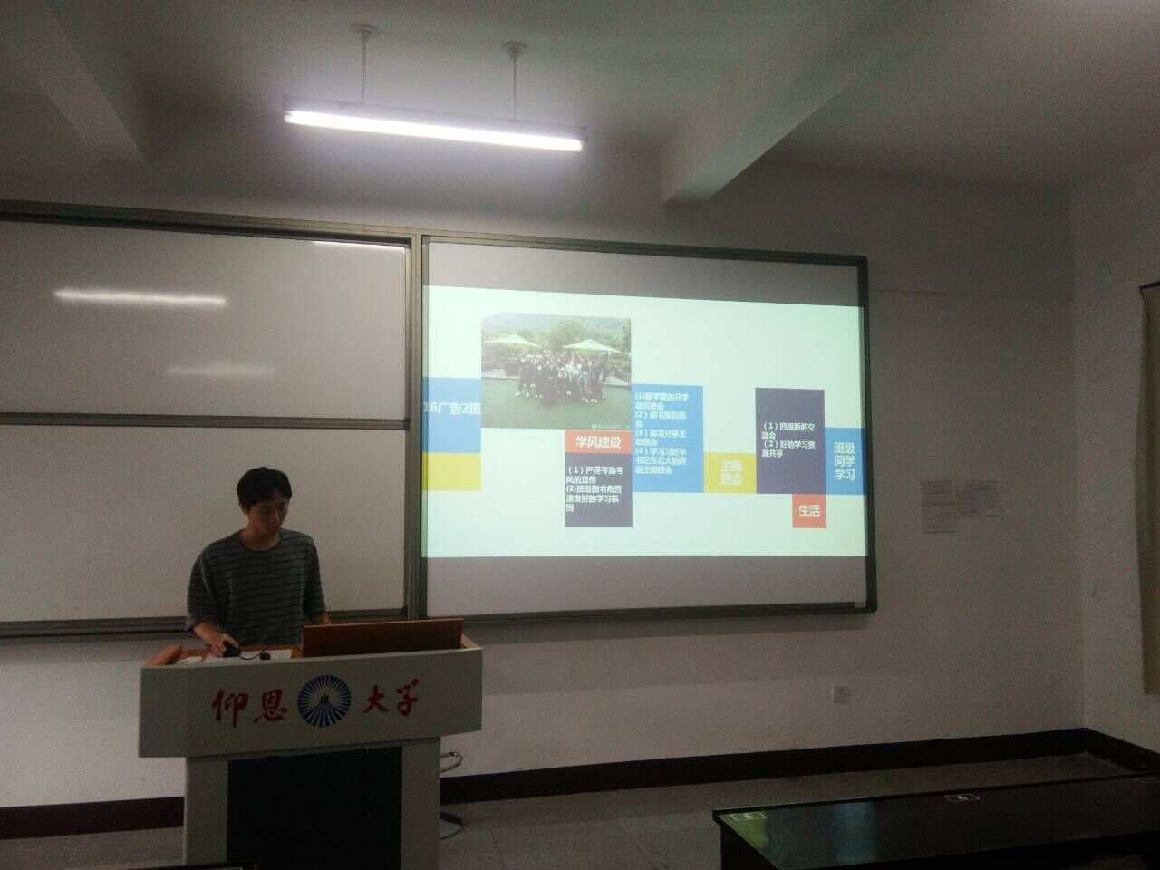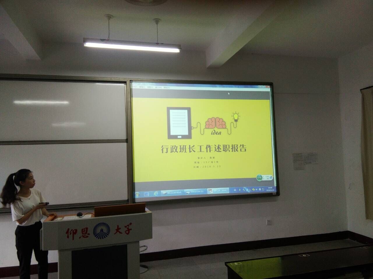 每位行政班长都精心准备了PPT进行述职报告,大致从学风建设、班干部队伍建设、班级学习生活情况、心理情况、主题班会、班级活动、未来规划等几个方面进行演讲,刘巧玫老师对本次活动进行总结,对行政班长提出了一些要求和期望,希望行政班长能够有本领、有担当,不断加强自身建设。
