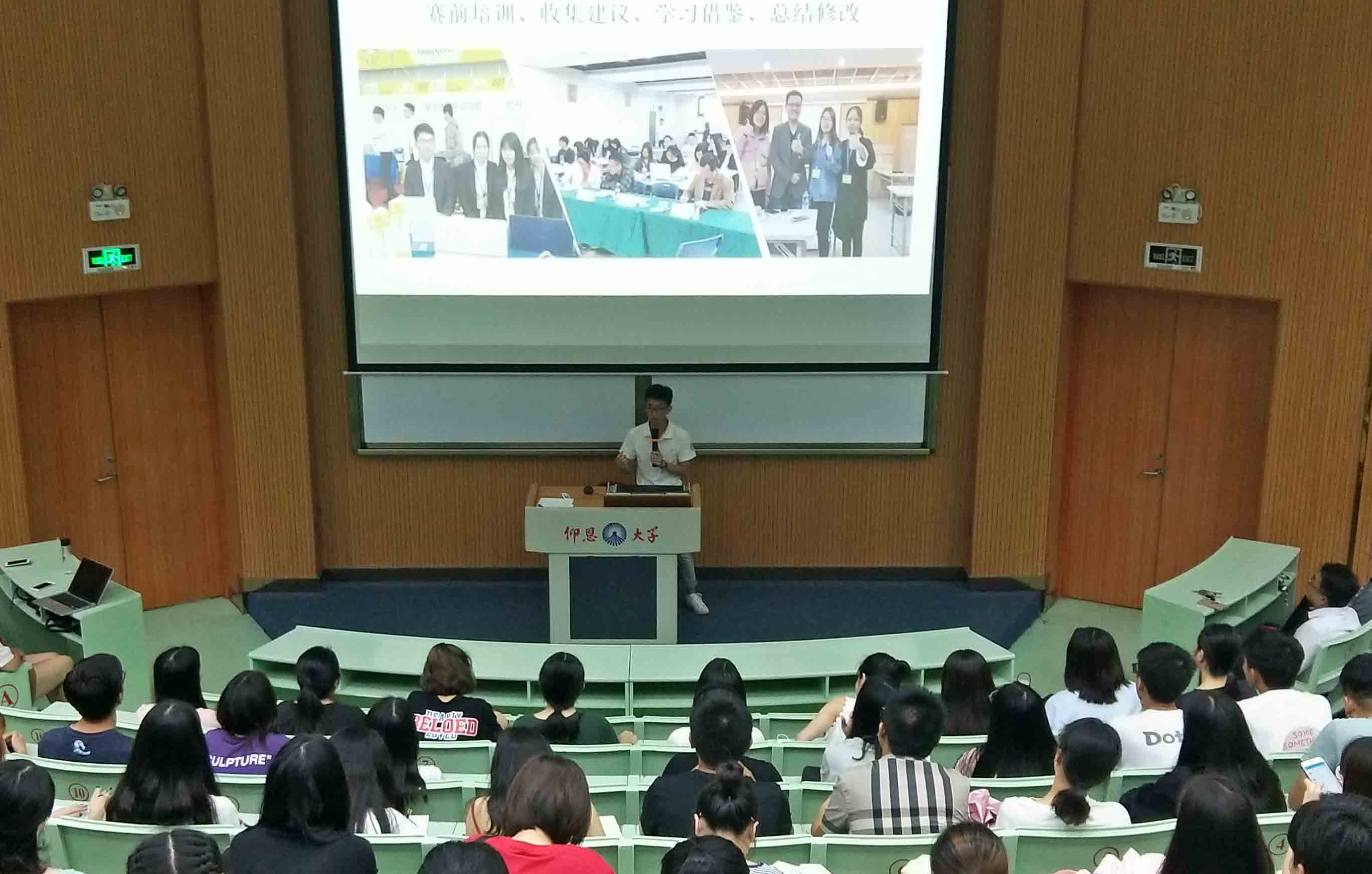 分享会现场 管理学院2015级“三创精英班” 同学以小组的形式进行赴台汇报,分别从旅行、竞赛与专利、学习、志工参访活动以及生活等五个方面详述了台湾之行的所见所闻所感。其中学习组和竞赛组关于创新创业课程学习、专利设计及申请、各类型竞赛过程的汇报让同学们非常感兴趣,在交流环节就相关问题进行了积极提问。