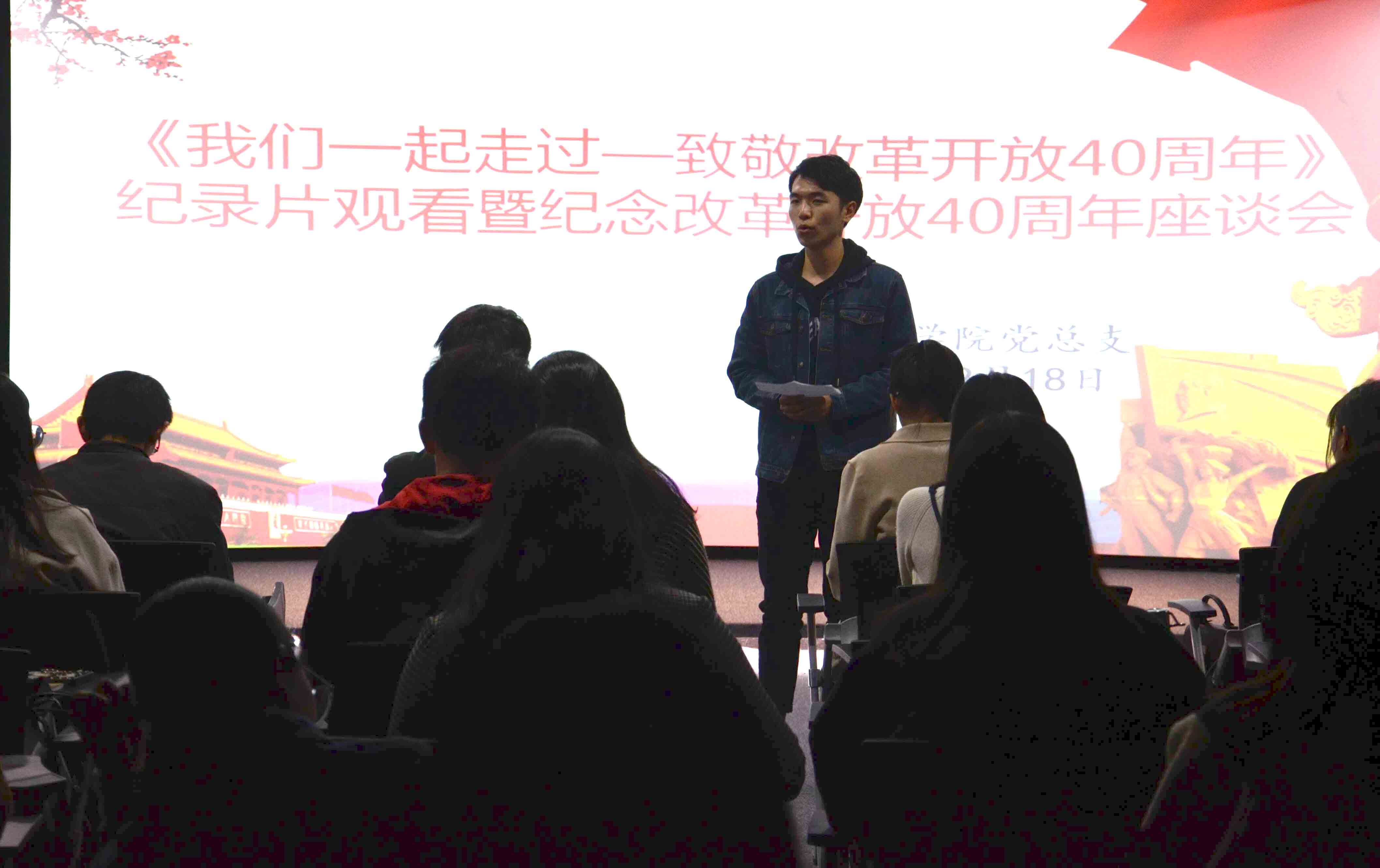 12月18日下午,一场以提高师生党员的党性修养,加强爱国主义教育为主题的纪念改革开放40周年座谈会在新区普照楼228室举行,yl7703永利集团党总支组织各党支部书记和师生党员代表共30余人,围绕改革开放40年来党的面貌、国家的面貌、人民的面貌、军队的面貌、中华民族的面貌带来的深刻变化发表感想,畅谈体会。
