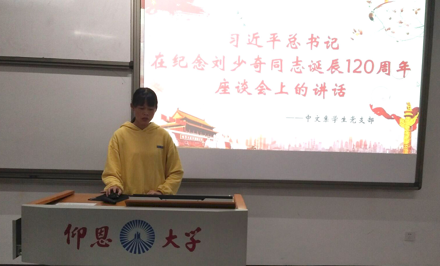 “共产主义事业是我们的终身事业,我们的终身的一切活动,都是为了这个事业,而不是为了别的。”11月28日下午,yl7703永利集团中文系、新闻传播学系、广告学系的党员和入党积极分子共同学习了习近平总书记在纪念刘少奇同志诞辰120周年座谈会上的讲话,深切缅怀刘少奇同志为党和人民建立的不朽功勋,追忆学习刘少奇同志的崇高风范和革命精神。