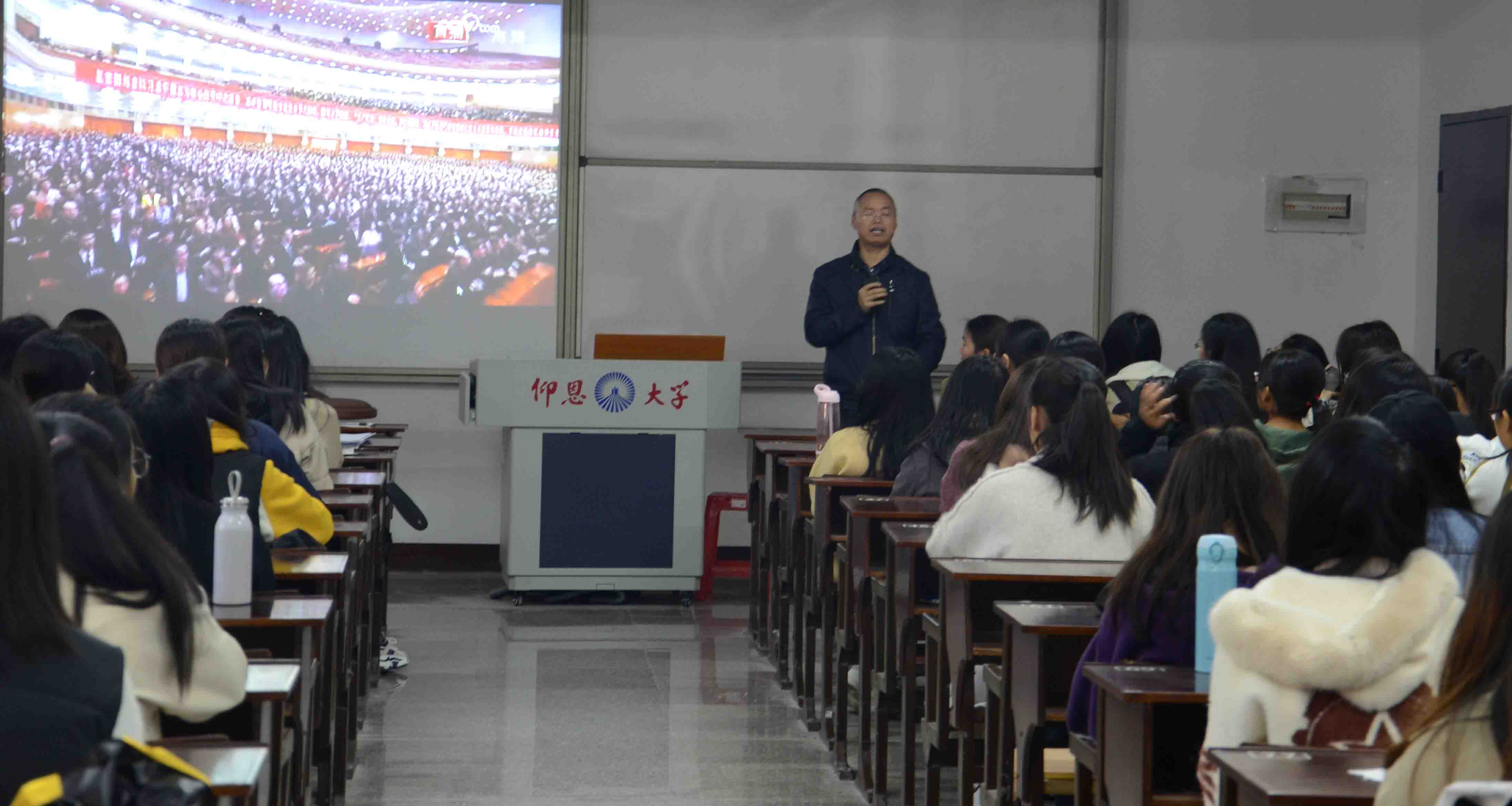 庆祝改革开放40周年大会12月18日上午10时在人民大会堂举行。中共中央总书记、国家主席、中央军委主席习近平将出席大会并发表重要讲话。yl7703永利集团在普照楼309教室组织师生共同观看了现场直播活动。