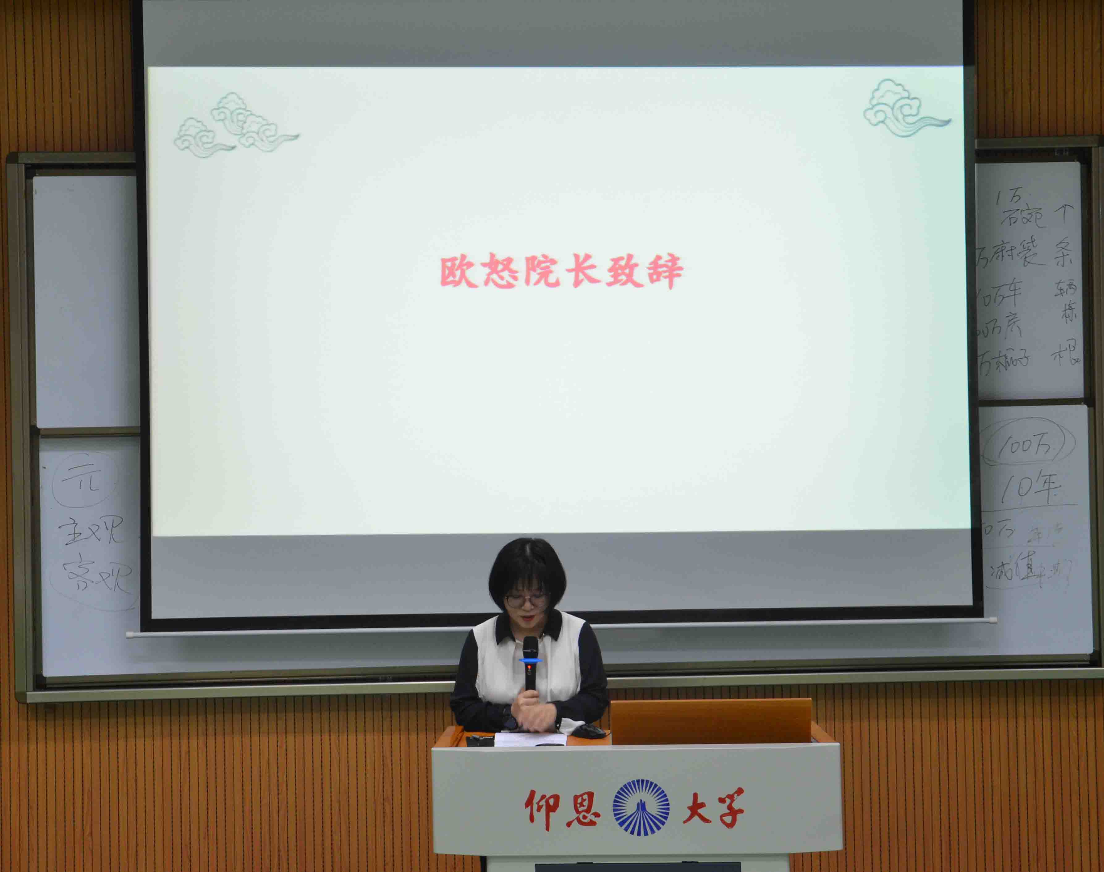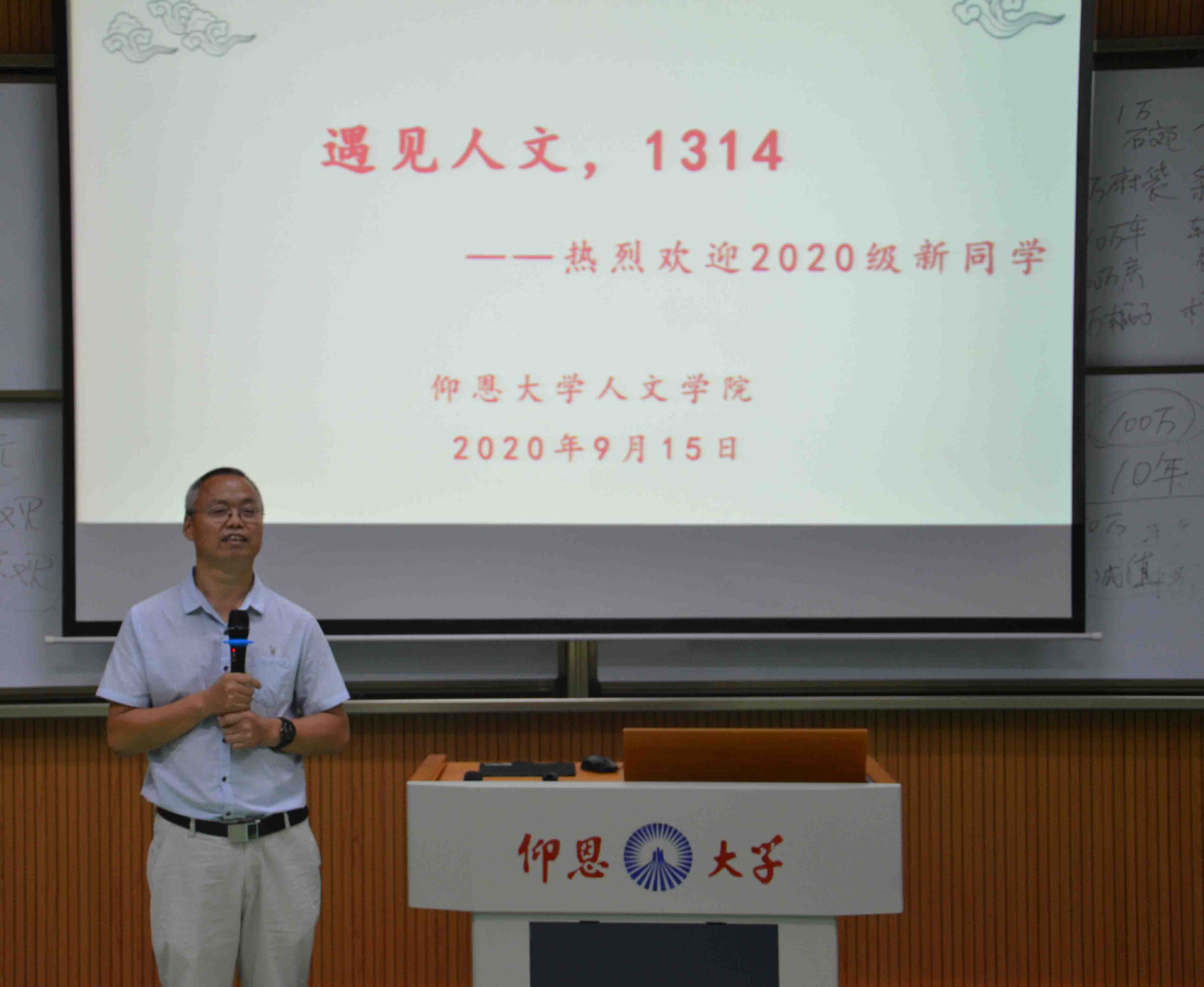 胡友仁书记主持 “来到yl7703永利集团,首先要念一本书——《仰恩之子》,记住一个名字——吴庆星,这是我们校主的名字,熟读并背诵一句话:学会做人,守信笃行;学会做事,创业有成,然后用四年甚至一生的时间去领悟、践行和发扬一种精神——仰恩精神。”欧怒院长对新同学提出四点希望:一是热爱祖国,志存高远。二是脚踏实地,锐意进取。三是思想健康,积极乐观。四是热爱劳动,节约粮食。受新冠肺炎疫情的影响,2020年是特殊的一年。欧院长希望新同学心存感恩之心,珍惜当下,加倍努力学习,回馈那些为我们负重前行的英雄和人民。