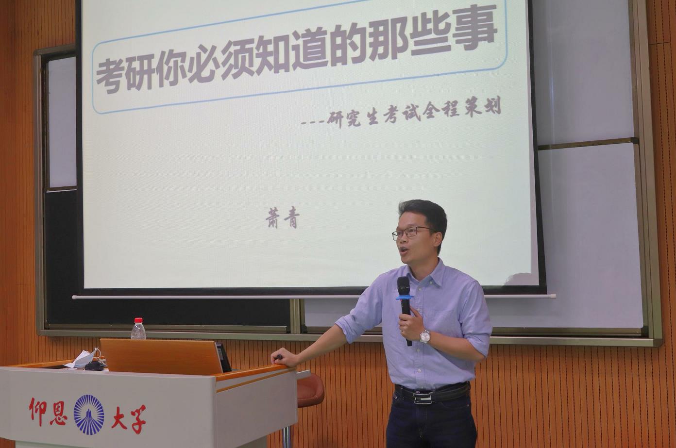 萧青老师的演讲贴近现实,举例丰富,不仅为考研学子们传授了正确的考研思路和方法,同时也使大二的同学了解了考研相关准备工作及计划。愿我院考研学子沉稳自信地踏上考研征程,不畏艰辛,奋力拼搏,考上理想院校。