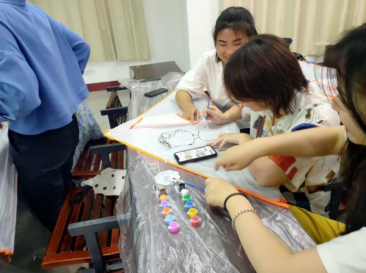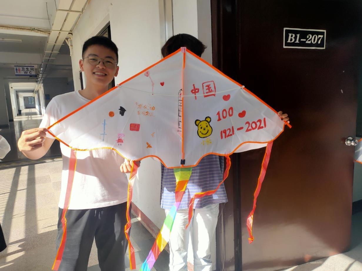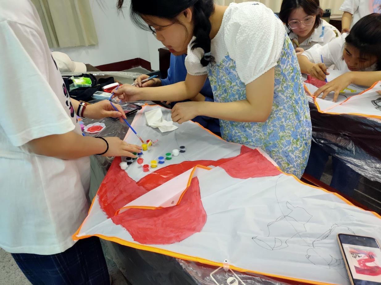 第二个环节是彩绘风筝,在支部书记王君婷老师的带领下,党员同志们亲手绘制风筝,用画笔绘画出对党的情感与美好祝愿,并在绘制完成后与作品合影留念。