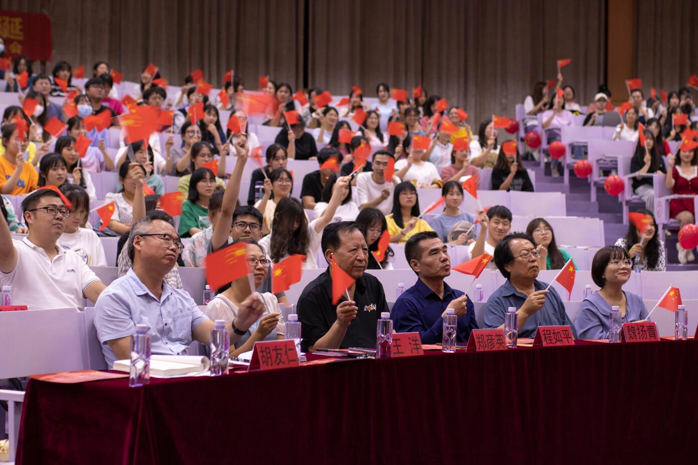 郑彦英教授和魏杨青教授对本次比赛做了点评,认为本次比赛很有意义,对参赛选手的精彩演绎给予充分肯定。校党委副书记程如平做了总结发言,他首先对选手和工作人员表示感谢,而后讲述了校主吴庆星先生的故事。活动最后,全体师生挥动手中的党旗、国旗,齐唱《不忘初心》,在歌声中表达对党和国家崇高的敬意。