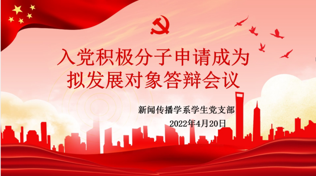 为进一步了解入党积极分子考察期间的各项表现情况,做好本学期新闻支部党员发展工作。2022年4月20日14:00,新闻支部于腾讯会议线上开展了入党积极分子申请成为拟发展对象答辩会议。新闻支部书记王勇浜同志、组织委员林水鑫同志、宣传委员李妍同志和13名入党积极分子参加了本次会议,本次会议由王勇浜同志主持。