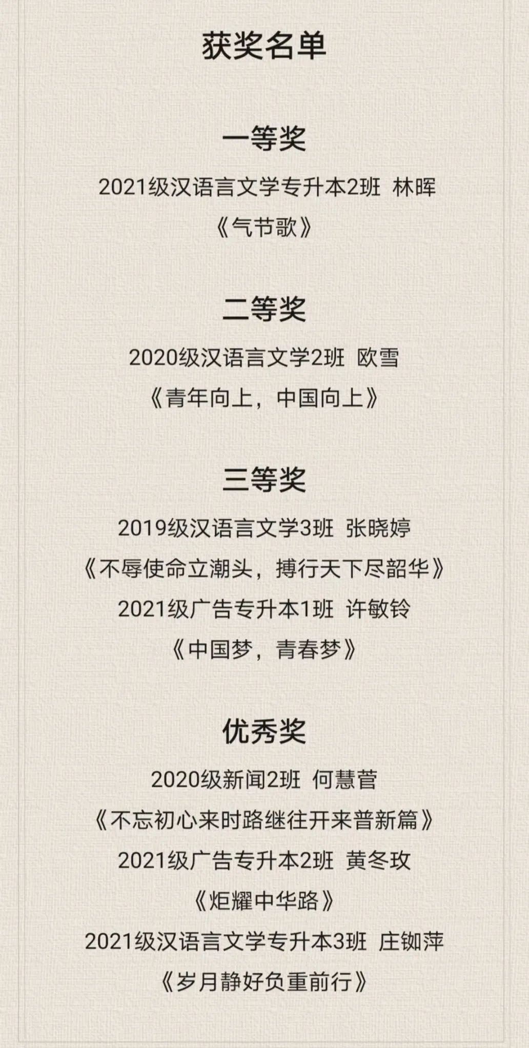 获奖名单