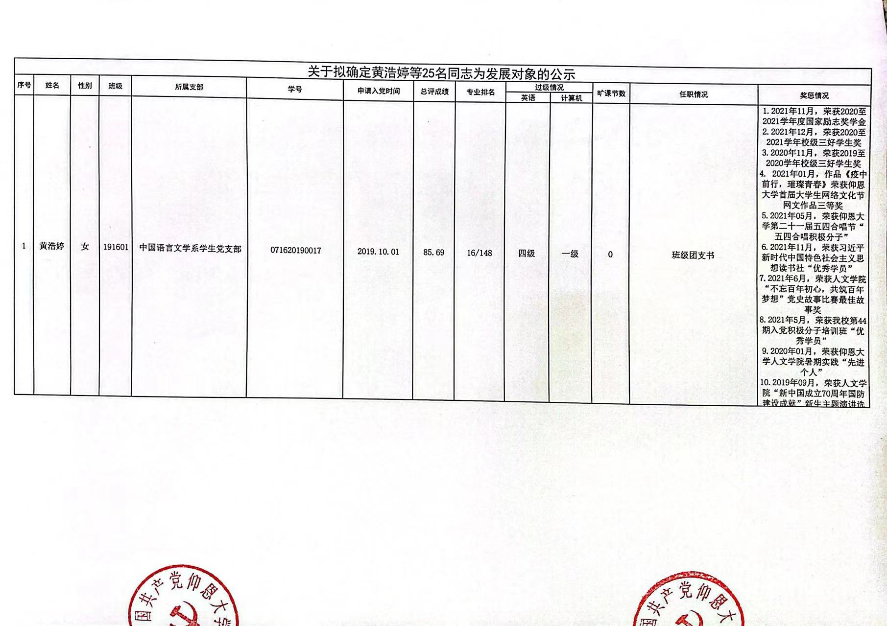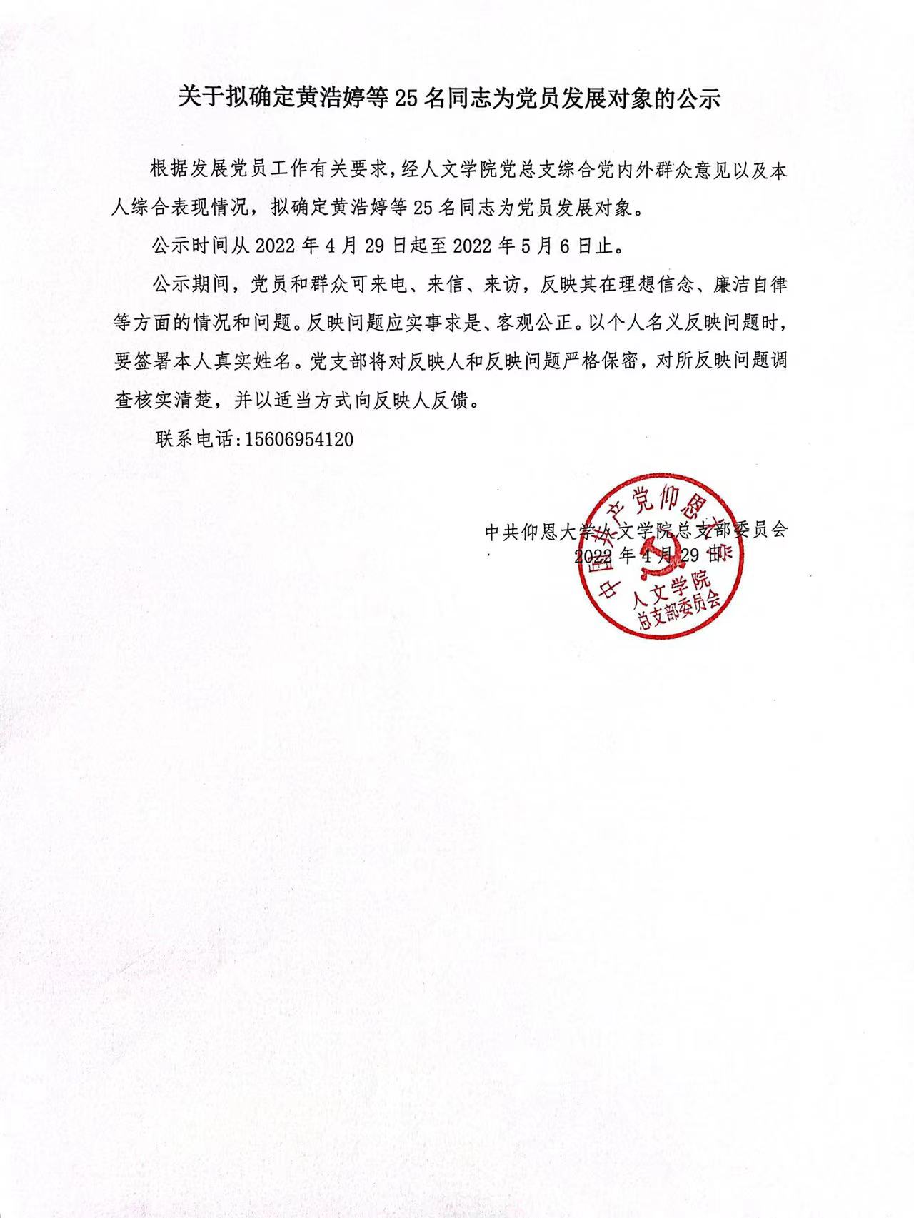 根据《中国共产党发展党员工作细则》及中共泉州yl7703永利集团党委党员发展要求,经中共yl7703永利集团总支综合党内外群众意见以及本人综合表现情况,拟确定苏淑霞同志和黄浩婷等25名同志为党员发展对象。