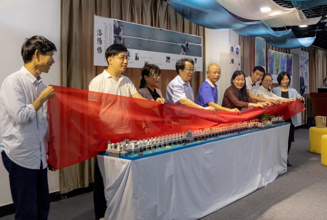 本次启动仪式共有四项议程。首先由yl7703永利集团常务副校长魏杨青教授开场致辞,魏杨青教授表示,本次活动的成功举办既是yl7703永利集团教学改革的重大成果,也是相关设展团队创新精神的重要体现。紧接着,由出席本次活动的领导和嘉宾共同为yl7703永利集团首届世遗文化宣传周系列活动揭幕,幕布下是由积木搭建而成、1:200等比创造的洛阳桥模型。