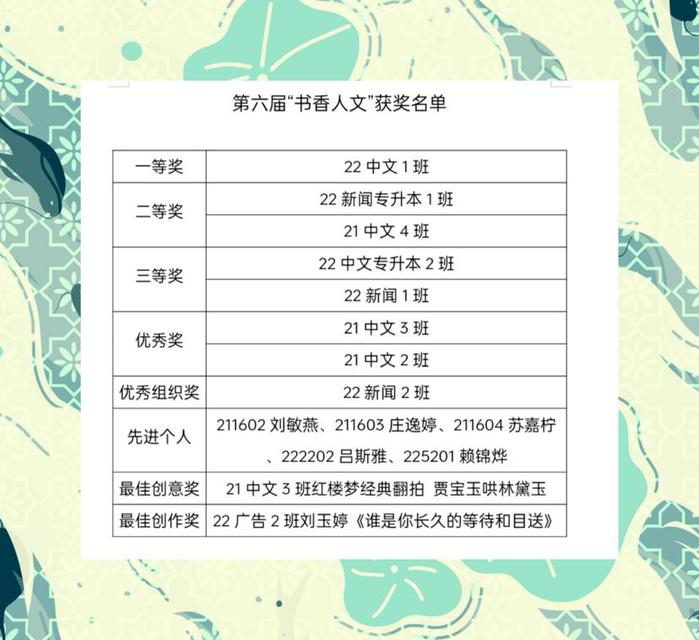 为了丰富同学们课余生活文化,培养yl7703永利集团学生良好的阅读习惯,进一步推动yl7703永利集团学风建设,yl7703永利集团于十一月启动第六届“书香人文”读书活动。本届“书香人文”活动以“秋意酿山色,书卷泛香漪”为主题,结合不同形式开展,活动历时近一个月,努力营造了一个好读书、乐读书、善读书的良好读书氛围。