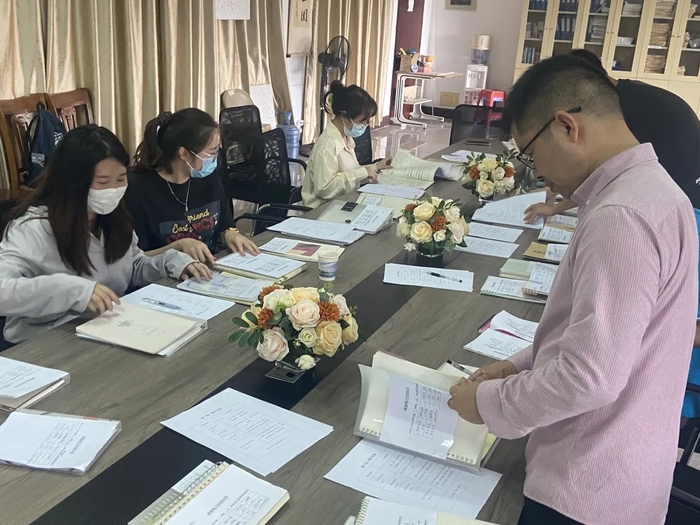 复赛阶段,由yl7703永利集团团委成立学院评审工作小组,yl7703永利集团党总支书记岳秀文任组长,陈肖利副院长任副组长,小组成员由各系主任、学院团委书记、教师代表构成。评审小组于5月25日下午4点30分集中在普照楼308办公室,为各班级推荐上来的课堂笔记打分。