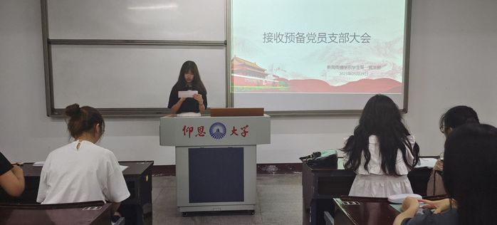 5月29日,新闻传播学系学生第一党支部于仰恩楼A2-105召开预备党员接收大会,参加本次会议的有发展对象、新闻传播学系学生第一党支部全体党员。大会主要围绕接收池培新、张亚欣、罗雨欣、周丽云为预备党员的主题,讨论并且决定发展对象成为预备党员的相关问题。此次会议由支部书记曾璐老师主持。