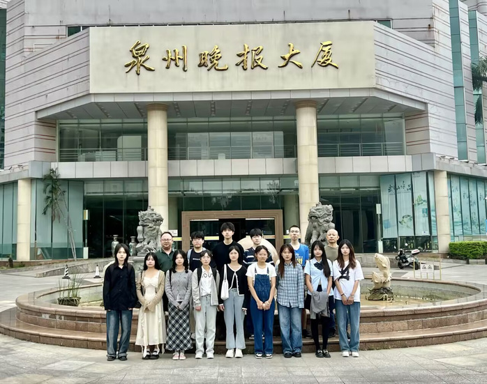 实习师生在泉州晚报大厦合影留念