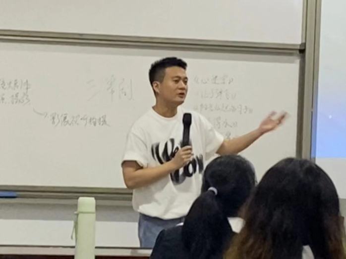 为进一步提高学生的专业素养,拓展学生的创作思维,4月12日下午,我院特邀厦门达愉文化总经理、即兴之作影业创始人——陈森辉老师为23级新闻学专升本班级讲授《剧本与分镜头脚本创作》课程。