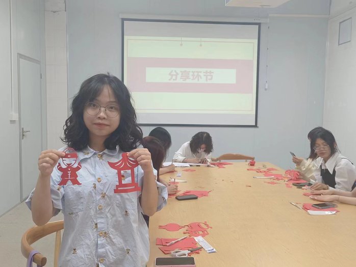 活动过程中,大家一起观看视频教程,学习剪纸的基本技巧和创作方法。一幅剪纸作品从选材、构图到后面的剪刻、粘贴,每一步都需要精心的思考和细致的操作。随后,进入剪纸创作环节,大家聚精会神地刻着、裁着,现场气氛活跃。不一会儿,一张张普通的红纸就演变成各式各样精致灵动、喜庆活泼的作品。