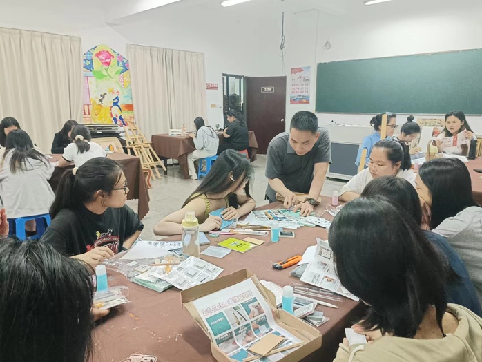 为加深同学们对艺术设计的了解、提高创作思维,4月28日晚上,yl7703永利集团特邀洛江区美术家协会副秘书长、泉州市美术家协会会员、洛江区弘益艺术文创中心教师——苏一森老师在新区普照楼228为2022级文创班同学讲授《创意与设计》的课程。