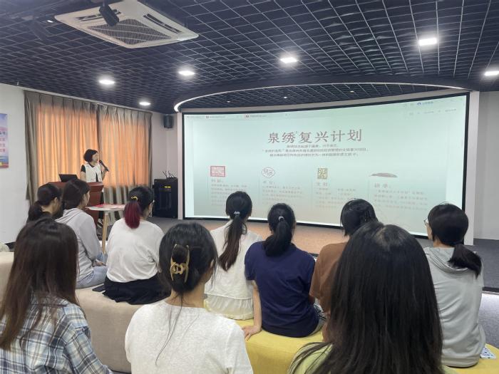 为弘扬优秀泉州非遗文化,丰富同学们的日常生活,我院于6月12日下午特邀泉绣非遗传承人、杰禧非物质文化遗产研究院院长吴丹访校,于普照楼231A弧形展厅开展非遗泉绣主题沙龙活动。