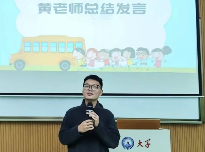 在进行了第二次抽奖后,荧幕上插播了一段新主席林一菲准备的视频《她与yl7703永利集团学生会的故事》。她通过分享自己的故事,让大家更多的了解院学生会这个大家庭,并能让大家在学生会里共同成长,不留遗憾。接着,黄老师总结发言提到过去一年里干部们的成长,用幽默风趣的语言讲述了与干部们的种种趣事,现场欢声笑语不断。黄老师用生动的事例劝勉新旧干部干事们在错误中成长,踏踏实实工作,不断提升自己的能力,同时也表达了对今晚节目演出的成功以及学生会工作一年比一年做的好的肯定和赞赏。最后,老师祝愿大家可以在学生会工作中学到更多知识与技能。