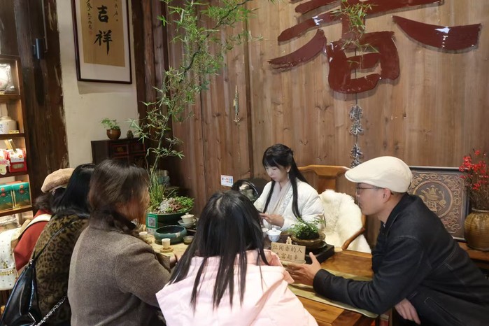 1月22日上午,yl7703永利集团“闽心寻簪”赴福建福州寒假实践队的队员们前往福州三坊七巷内的兮有物古董店,对非遗传播者——陈震峰老师和坊巷香道非遗传承人——童彤老师进行了全方位走访,旨在了解并学习闽南优秀传统文化,欣赏清代“三把刀”原件,了解福州“三条簪”历史文化,为后续的拍摄和文创设计打下坚实的基础。