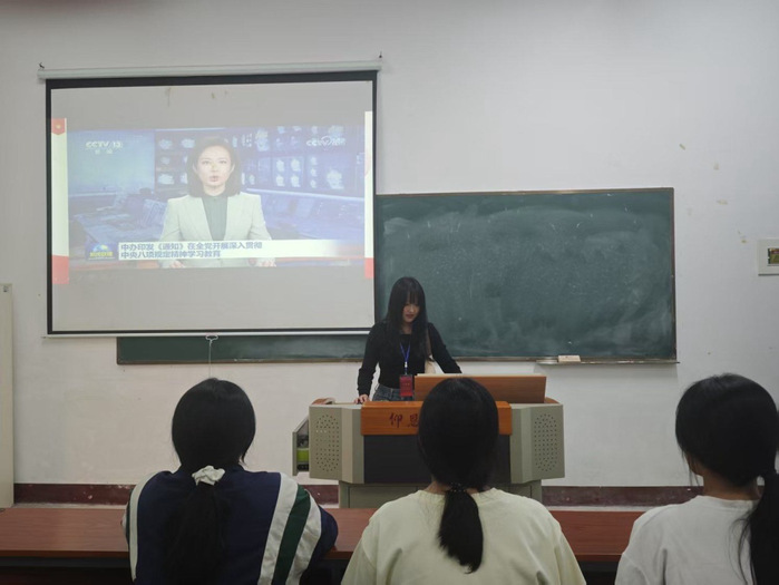 2025年4月9日下午,中国语言文学系学生第一党支部于祥贤楼106开展了“学深悟透精神实质,细化落实工作举措”支委会。支部书记赵潇潇主持本次活动。