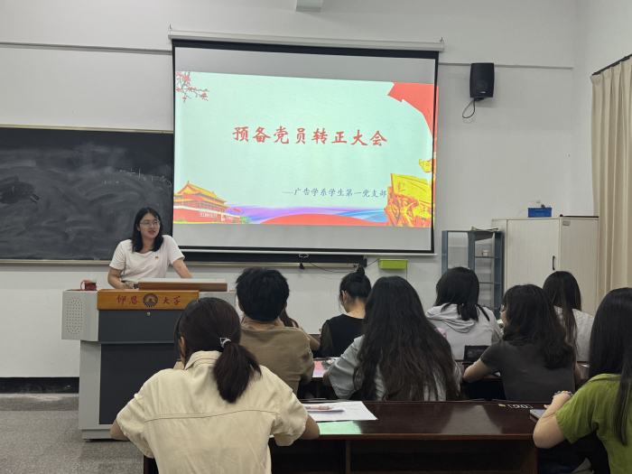 20256月13日,广告学系学生第一党支部在普照楼105a教室召开预备党员转正大会。本次会议由支部书记戴舒容主持,支部全体党员齐聚一堂,共同讨论苏涵、何舒静等8名同志的转正事宜。