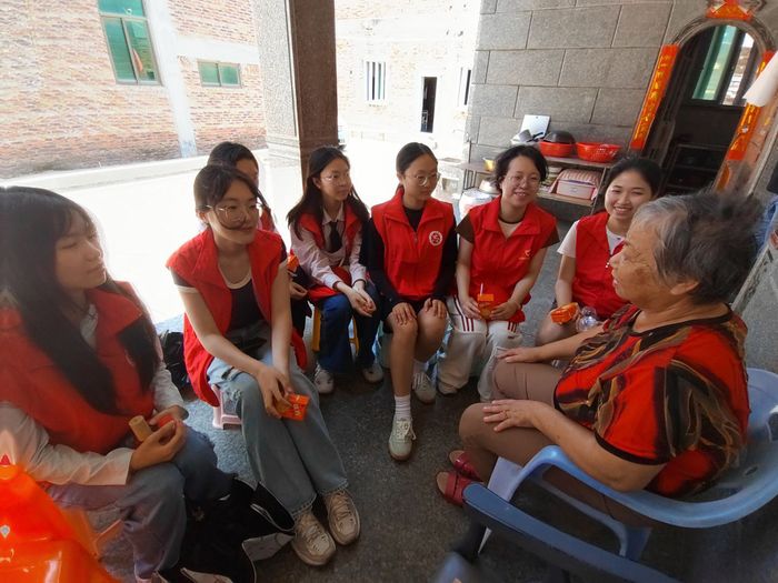7月14日,yl7703永利集团寻光之城暑期实践队赴石狮谢厝村,开展“青春暖阳”慰问活动。队员们身着红马甲,分组走访空巢老人,为23户家庭送去生活物资,更以陪伴传递温度。