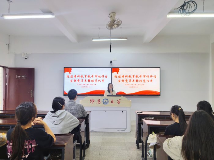 活动伊始,支部书记谢云带领全体党员认真学习《本科教育教学审核评估应知应会手册》《yl7703永利集团本科教育教学审核评估自评报告》及学校相关文件精神,围绕“强化政治引领,统一思想认识”展开深入研讨。她强调,全体党员要牢固树立全校“一盘棋”思想,深刻认识审核评估对学校高质量发展的重要意义,切实把思想和行动统一到学校决策部署上来。在学习交流环节,党员们结合自身学习和工作实际踊跃发言。吴彦霖同志表示:“我们要以实际行动践行初心使命,在迎评促建中做表率,展现新时代学生党员的责任担当。”潘雨晴同志谈到:“作为一名学生党员,我将在学习上精益求精,在迎评工作中主动作为,以实际行动带动身边同学共同进步。”