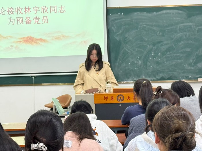 大会伊始,林艺珊等八位发展对象依次发言。林艺珊同志表示,未来将会积极学习理论知识,提高自己的综合素质,对于困难和挫折也将始终保持积极乐观的心态努力克服,提升自我。随后,林艺珊同志的入党介绍人及与会同志对其是否符合党员要求进行了客观全面的讨论。在针对八名发展对象的入党议题逐个进行讨论后,经正式党员无记名投票表决,支部大会一致同意接收林艺珊、林宇欣、林雅信、林子杰、刘明涵、李欣语、魏语彤、张书彬等八位同志为中共预备党员。