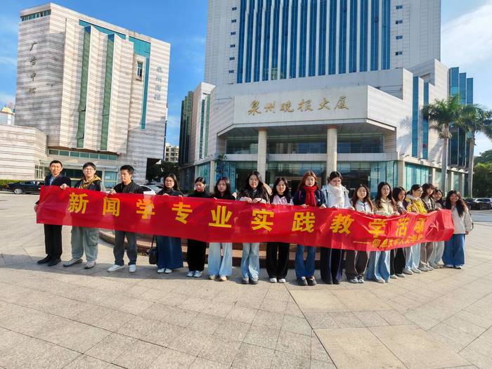 1215日上午,阳光明媚,2022级新闻学12班的64名同学在带队老师的带领下,分别前往泉州晚报社、泉州广播电视台、中国网海峡频道、泉州市人民检察院、晋江市融媒体中心、石狮市融媒体中心、洛江区融媒体中心、厦门众山小影视公司和厦门达愉文化传媒公司等单位,开展为期一个月的专业实习。实习生们的到来,受到了实习单位的热情欢迎。另有部分同学在学校宣传部开展微信公众号推送和短视频制作等方面的专业实习。