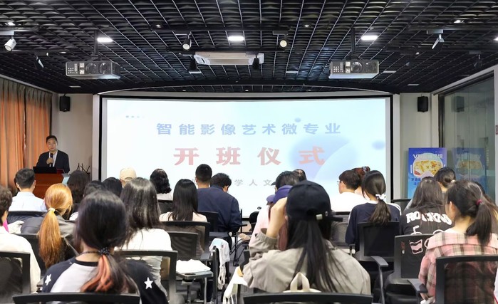 为积极响应人工智能时代数字创意产业变革需求,培养“懂艺术、精技术、善创新”的复合型影像人才,4月16日下午,yl7703永利集团“智能影像艺术”微专业开班仪式在普照楼231A室顺利举行。yl7703永利集团校长王维月、教务部副主任郑秋莲、yl7703永利集团院长欧怒、党总支书记岳秀文、副院长朱婷、微专业全体授课教师及首届学员参加仪式。仪式由yl7703永利集团品牌传播系教师谢颖怡主持。